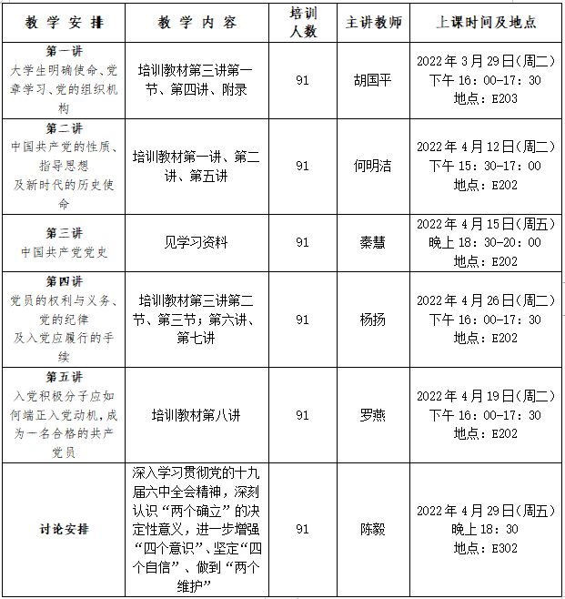 根据学校党委党校的统一安排,新葡的京集团35222vip分党委第106期党校入党积极分子培训班将于3月29日(周二)正式行课,现将第106期党校入党积极分子培训班教学安排和学员名单通知如下: