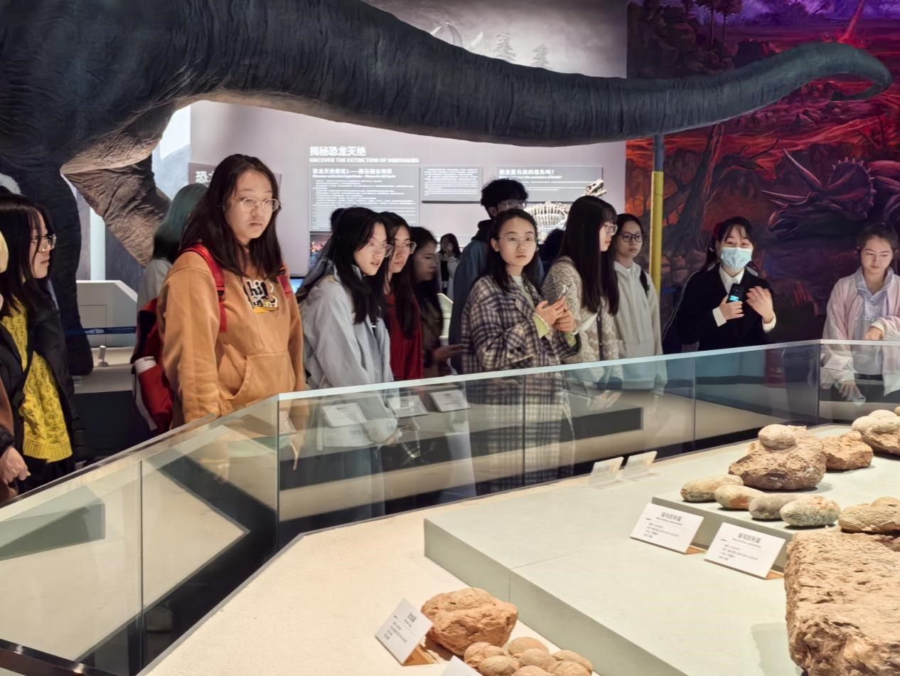 学院师生参观了地质环境、矿产资源、龙行川渝、恐龙探秘、生命碳源等多个主题展厅,通过生动的标本、珍贵的化石以及多媒体的展示,回顾了地球从诞生至今的壮丽历程,深入了解了生物演化、地质构造和矿产分布等专业知识,深刻认识到以美丽中国建设全面推进人与自然和谐共生的现代化的重大意义。