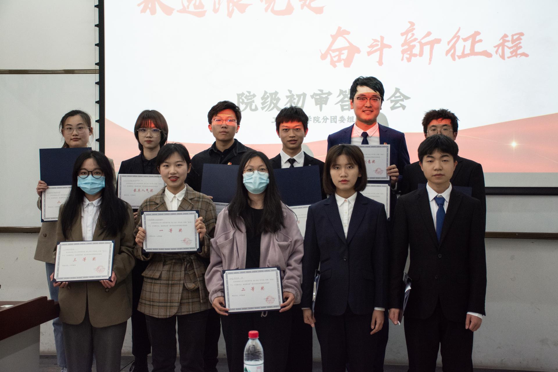 各支部团支书围绕主题对所在支部各项团日活动组织开展情况依次进行汇报,如学习青年运动史、主题演讲比赛等,并分享了支部团员学习感悟。答辩环节,现场评委对各团支部活动组织及工作开展给予高度肯定,并就如何进一步加强团支部建设进行提问,各团支部积极思考,结合各自支部特点给出了精彩的回答。会上,评委们希望各支部再接再厉,通过创新性开展各项团日活动增强团支部凝聚力、提高团员的责任意识。会议现场宣布了答辩获奖名单并举行颁奖仪式。