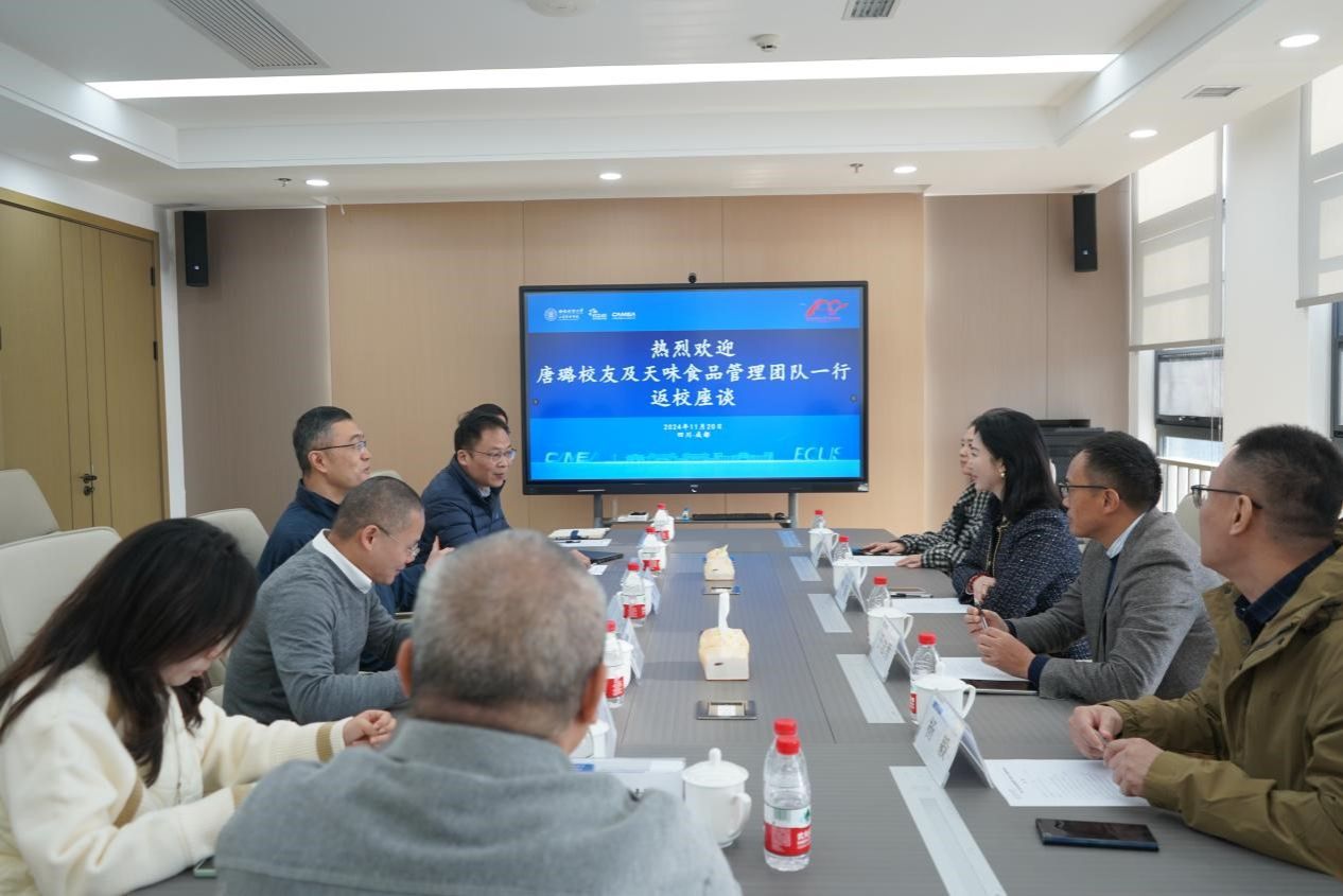 11月20日,四川天味食品集团股份有限公司创始人、副董事长唐璐校友及其管理团队到访学校,学校党委常委、副校长史代敏与唐璐一行举行座谈交流。