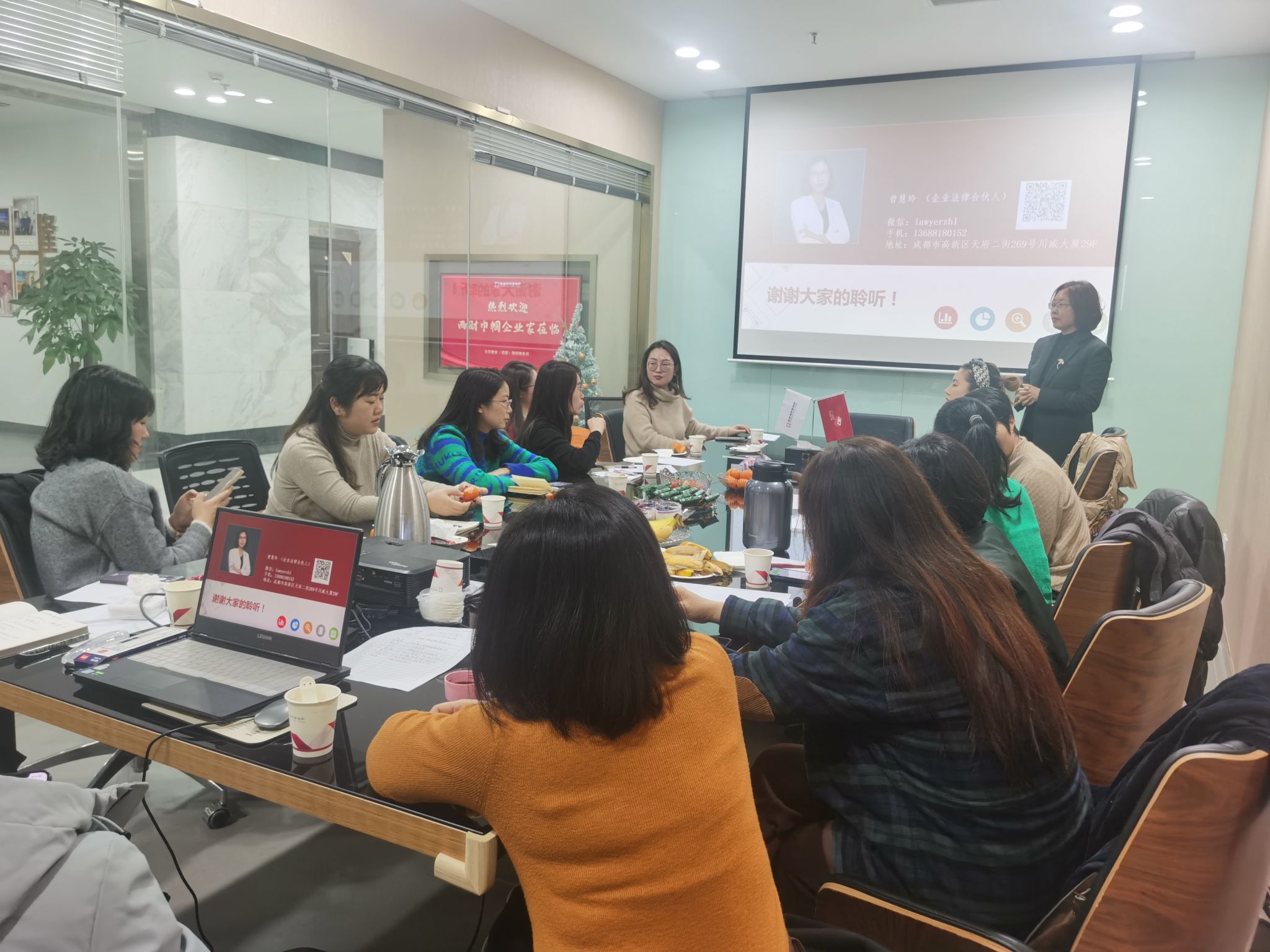 1月18日,巾帼校友会在北京隆安(成都)律师事务所会议室举办了一场题为“新公司法背景下企业主的应对策略”的专题讲座。本次讲座由巾帼七班校友、资深法律专家曾慧玲主讲,旨在帮助校友们更好地理解和应对新公司法带来的变化和挑战。