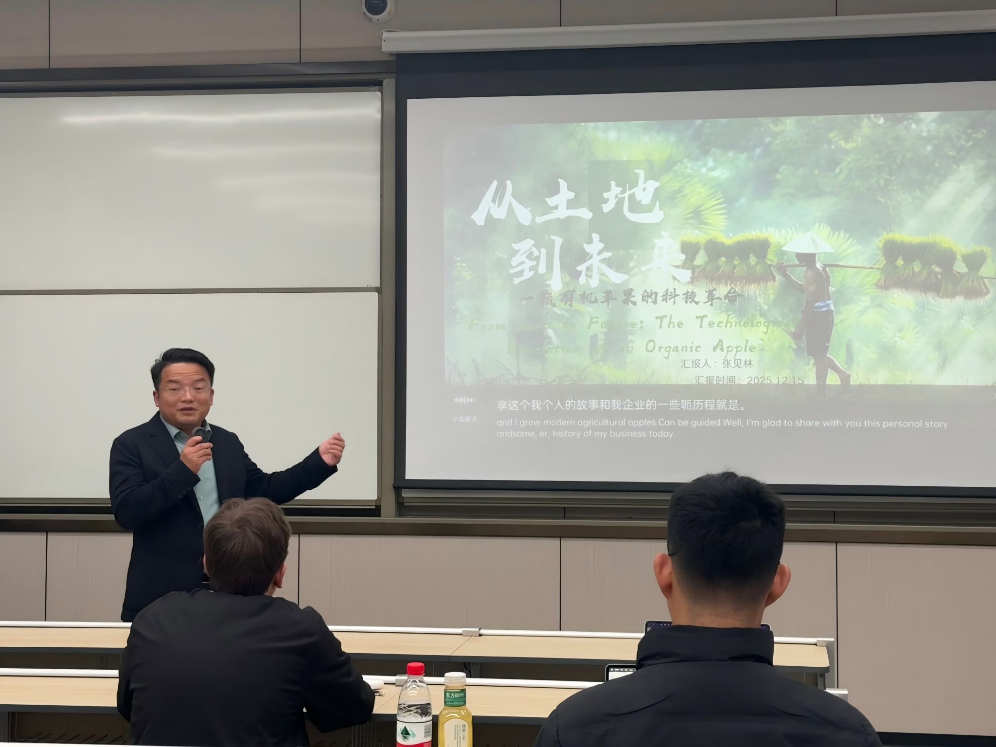 本次讲座聚焦我国西北地区农业企业的创新实践。张见林以亲身创业历程为例,系统阐述了农业企业如何通过构建“科技—产业—社区”三重协同创新机制助力乡村全面振兴,详细介绍了物联网、智能灌溉与有机种植的融合及智慧果园运营体系,为理解科技赋能农业与社区发展提供了生动案例。现场还围绕智慧农业落地、提升农产品附加值、品牌建设与市场开拓等议题展开了热烈讨论。