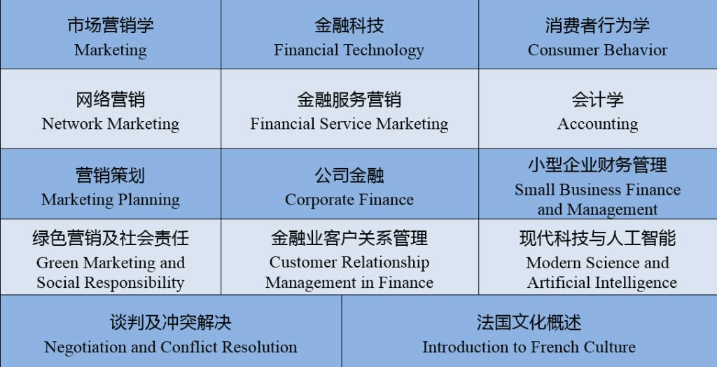 项目提供市场营销、金融和管理学科领域的一流学习体验,创造与学界、商界领袖学习互动的平台,注重培养学生的国际视野与跨文化交际能力。